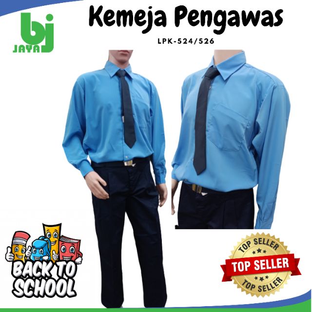Kemeja Biru Pakaian Pengawas Tangan Panjang Kain Licin Shopee Malaysia